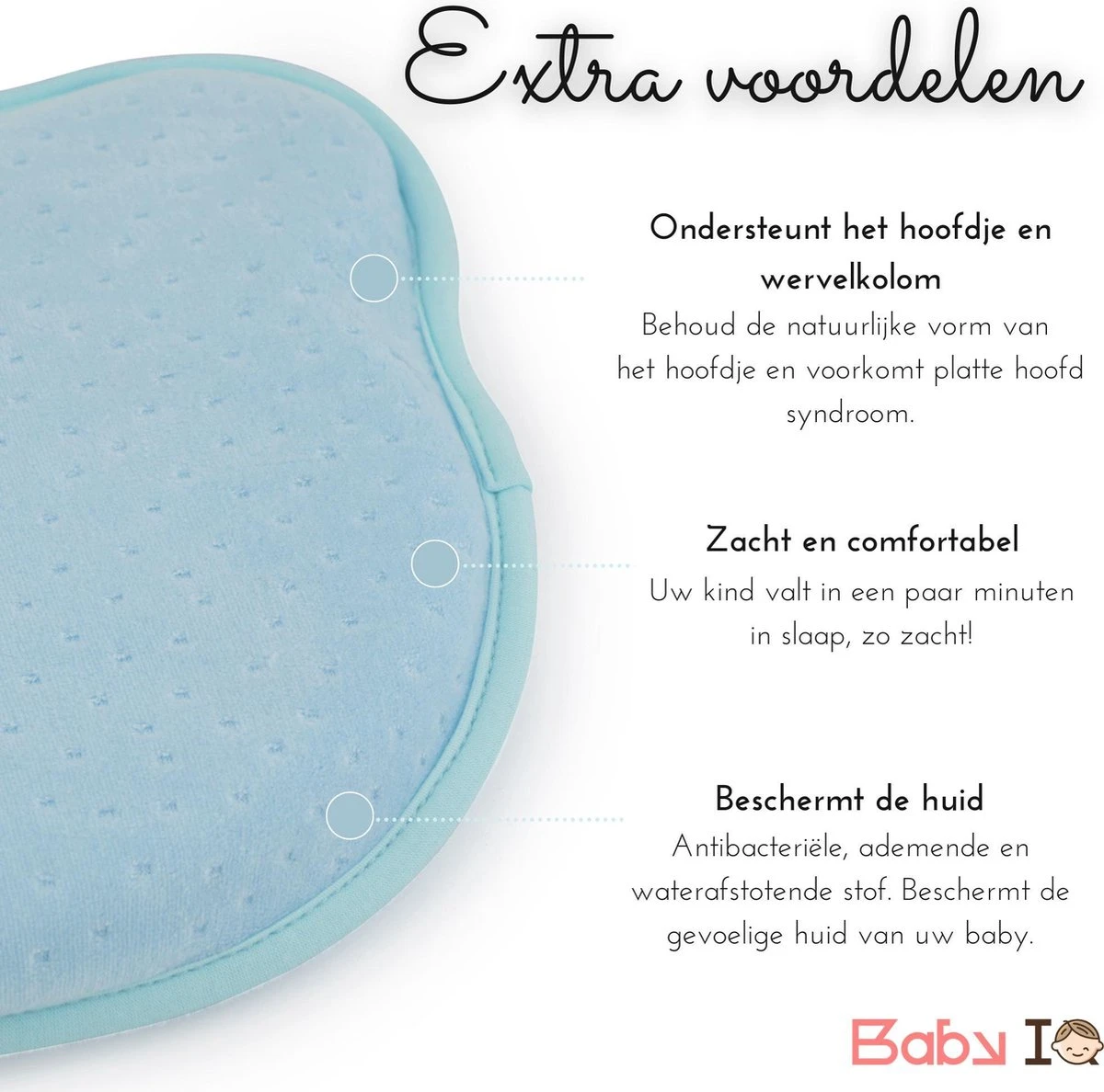 Maar met dit zachte orthopedische hoofdkussentje van BabyIQ, wordt dit tegen gegaan.