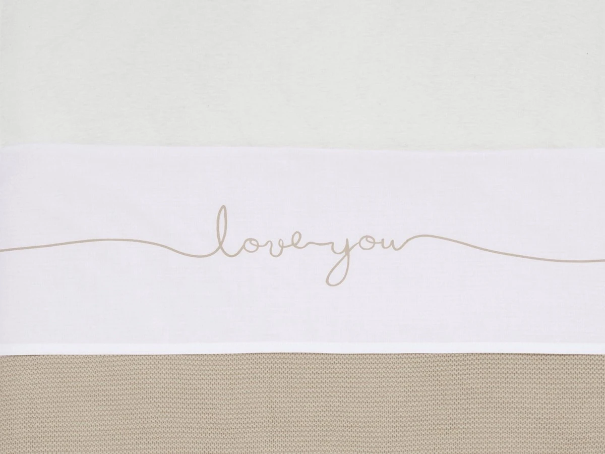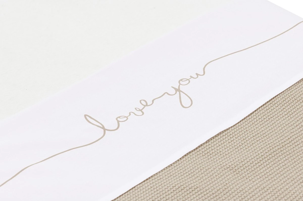 Met een wit lakentje kun je het bedje van jouw baby veilig, kort en strak opmaken. Door de zijkanten van het lakentje onder het matrasje te stoppen, slaapt jouw kleintje niet alleen veilig, maar heeft het ook een geborgen gevoel. Dit lieve lakentje met de tekst ‘love you’ past perfect bij de dekens uit het Basic knit thema en het Bliss knit thema van Jollein.