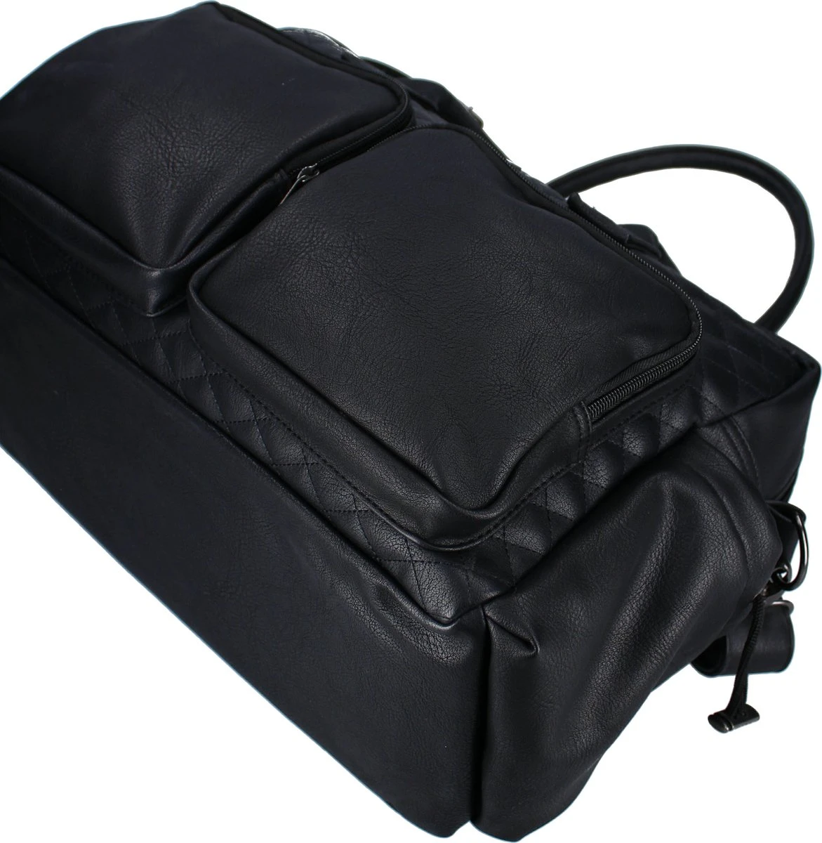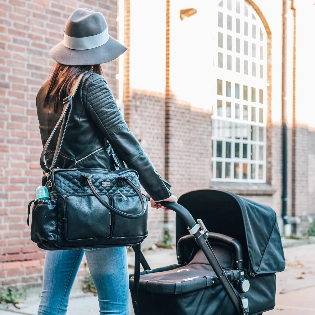 Deze verzorgingstas is een city chic model in leatherlook. Het model heeft stiksels in ruitjespatroon, wat de verzorgingstas een luxueuze uitstraling geeft. Naast de stijlvolle uitstraling is de verzorgingstas ook zeer praktisch met een ruim hoofdvak en diverse insteek en opbergvakjes. Hiermee is het een ware it-bag voor de fashionable mama’s.