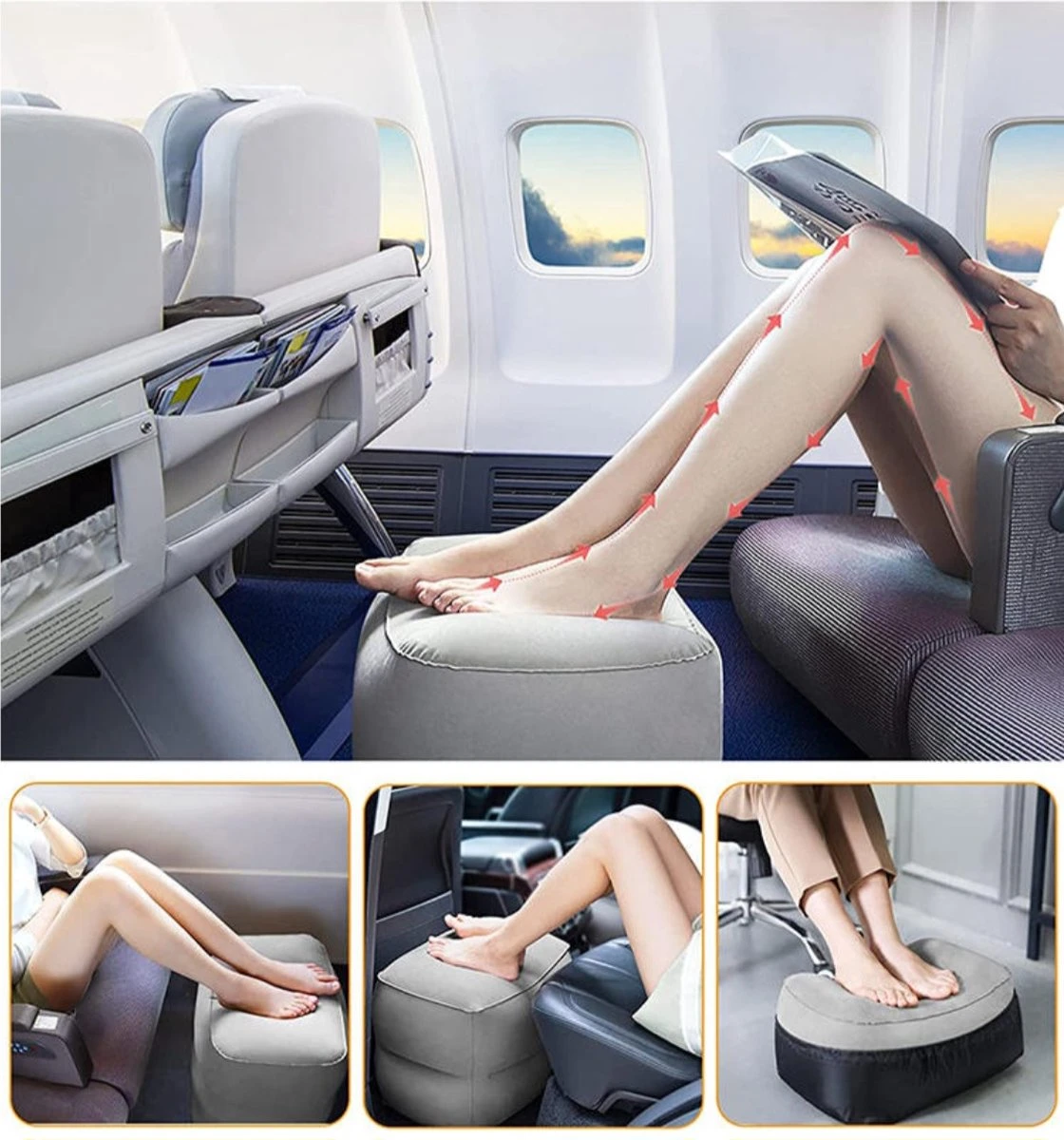 · Te gebruiken als vliegtuigbedje, voetensteun of reiskussen